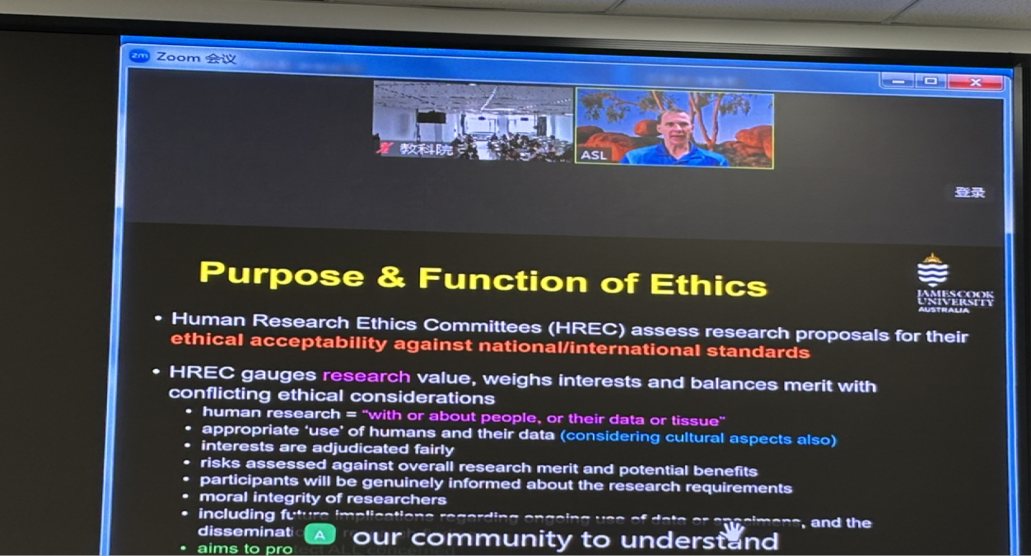 2024年11月1日下午14:30-16:30,在太阳成tyc33455cc文瀛报告厅,詹姆斯库克大学Anthony Leicht教授进行了“人体研究:伦理问题与管理”的线上主题讲座,讲座由心理学系主任梁晓燕教授主持。