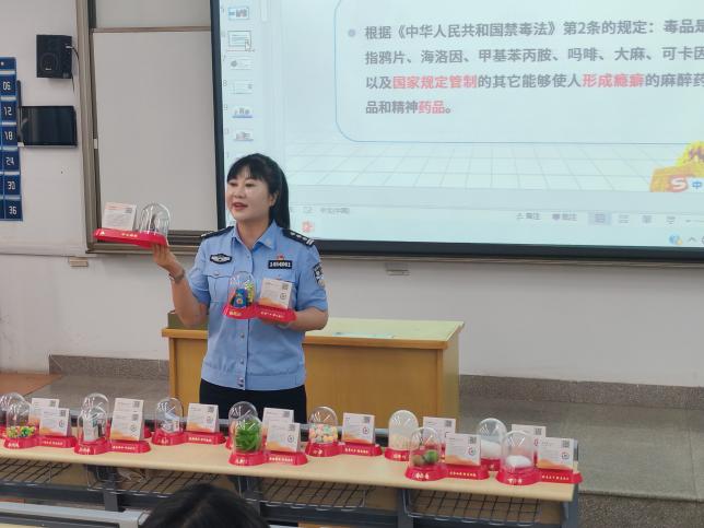 活动特邀禁毒民警杨警官担任主讲。活动现场,禁毒工作人员通过发放禁毒宣传资料、展示毒品仿真模型,向学生们详细介绍了毒品的种类、危害及防范方法。深入讲解了毒品对个人、家庭和社会的严重危害,让学生们深刻认识到禁毒工作的重要性和紧迫性。