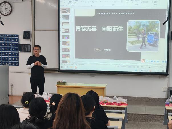 接着吕加军老师走进学生之间,以亲身经历讲述毒品带来的噩梦。同学们在那些故事里感受到了一个支离破碎的家庭,以及子欲养而亲不待的遗憾。吕老师用自己的坦诚勇敢的面对了自己的错误,让更多人看到吸毒的危害,告诫学生们要自觉抵制毒品,远离违法犯罪。鼓励学生们积极向家人、朋友宣传禁毒知识,共同营造无毒社会环境。