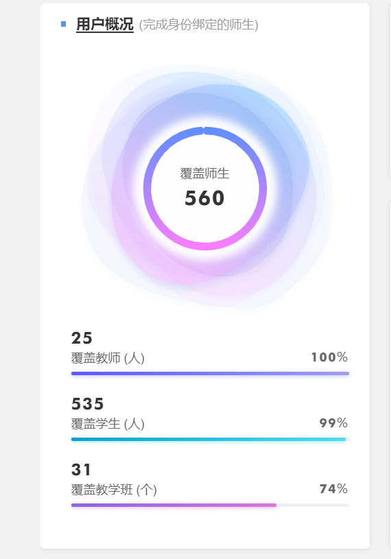 一个月以来的总课堂数为205,课件总数(课堂预习率)、试卷总数、公告总数的统计数据不尽理想。