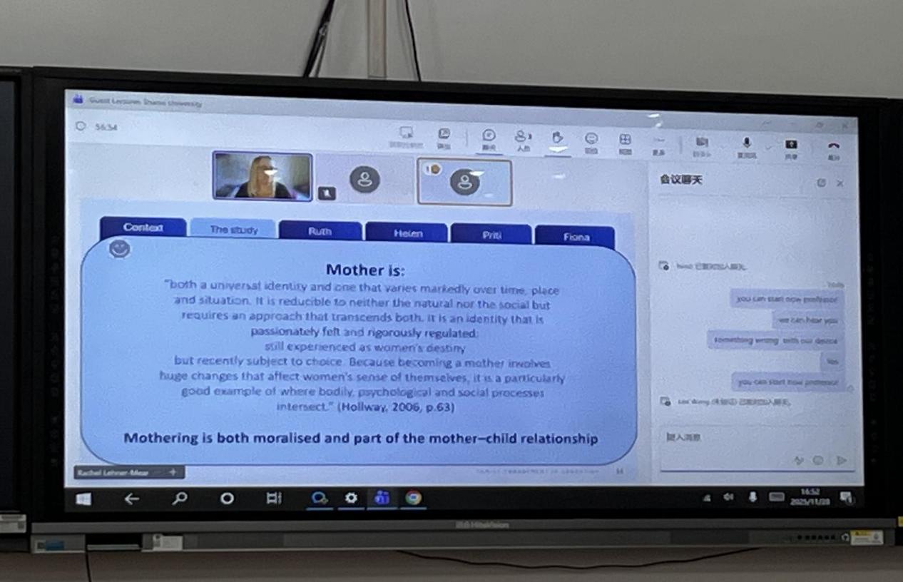 11月28日,英国诺丁汉大学Rachel Lehner-Mear博士进行了主题为《Mothers and their educational support in the UK primary school context》的讲座。她提到,在英国新自由主义教育政策背景下,家长尤其是母亲被塑造为子女学业成就的“第一责任人”,国家与学校通过话语与实践将教育成败重心转移至家庭,使母亲承担配合学校的职责,其角色既不可或缺又常被隐形化。随后,Rachel Lehner-Mear博士对当前教育领域中流行的“家校合作伙伴关系”这一情况提出批判性质疑。